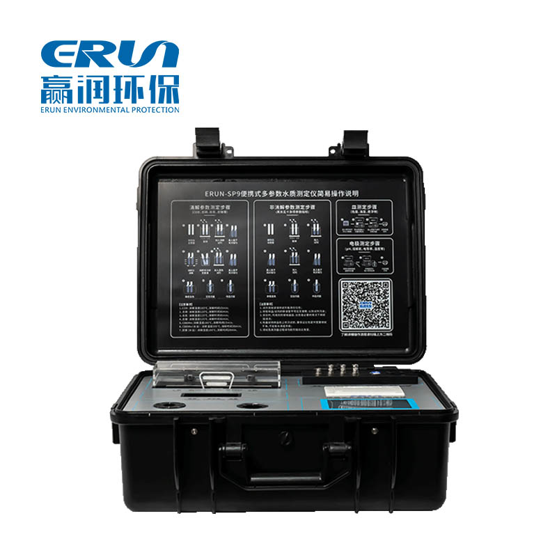 贏潤集團(tuán)研發(fā)生產(chǎn)的ERUN-SP9便攜式多參數(shù)水質(zhì)分析測定儀是一款集分光光度法與電極法于一體的水質(zhì)快速測試設(shè)備,專為現(xiàn)場快速檢測和實(shí)驗(yàn)室多項(xiàng)目分析而設(shè)計(jì)。手提式多功能綜合水質(zhì)測定儀配備16通道光學(xué)檢測系統(tǒng),可精準(zhǔn)測定COD、氨氮、總磷、總氮、重金屬等60余項(xiàng)指標(biāo),同時(shí)支持PH、電導(dǎo)率、TDS、鹽度、溶解氧及水溫等參數(shù)測量,涵蓋從污染源追蹤到飲用水質(zhì)控制的多種應(yīng)用場景。便攜式多參數(shù)水質(zhì)檢測儀內(nèi)置雙溫控消解裝置,采用鋰電池供電,無需外部電源,在野外、無電環(huán)境中依舊穩(wěn)定運(yùn)行,是環(huán)境監(jiān)測、科研實(shí)驗(yàn)、污水處理廠、高